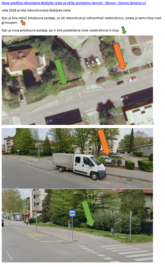 40m naprej je uvedena nova avtobusna postaja, kjer pa ni nadstrešnice in klopi.