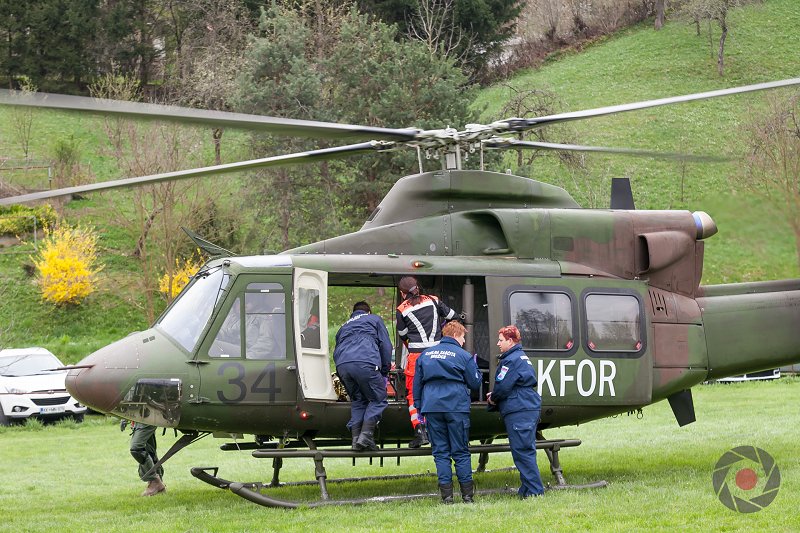 Najdeno poškodovano mladoletno osebo na nosilih prinesejo na lokacijo za transport z vojaškim helikopterjem. Ob 11:00. uri pristane helikopter na parceli lastnika Milana Jamnika na Velikih Malencah. Potem ko vanj naložijo poškodovanca na nosilih se vanj kot spremstvo vkrcajo še Janja Ojsteršek, Primož Hribšek in Nevenka Simon ter poletijo proti Splošni bolnišnici Brežice, kamor prispejo ob 11:10. uri. Po izkrcanju poškodovanca s spremstvom helikopter odleti proti Vojašnici Jerneja Molana v Cerklje ob Krki in konča dejavnosti na vaji.