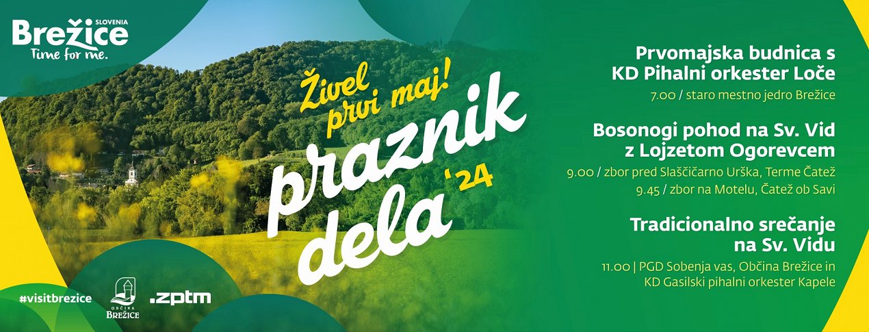 Spoštovane občanke, spoštovani občani, po dveh letih vas z veseljem ponovno vabimo na tradicionalno prvomajsko budnico v mestu Brežice ob 7. uri in na tradicionalno prvomajsko srečanje na jasi pri Sv. Vidu ob 11. uri.