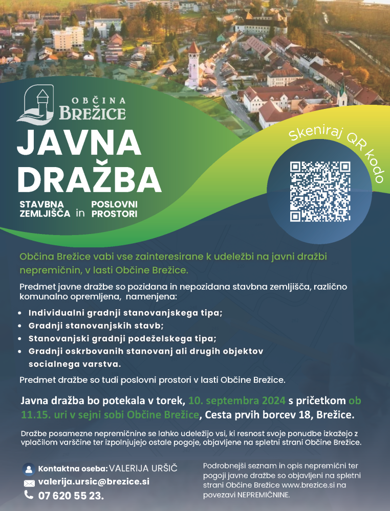 - Javna dražba - Torek, 10. september 2024 s pričetkom ob 11.15. uri, sejna soba Občine Brežice, Cesta prvih borcev 18, Brežice;