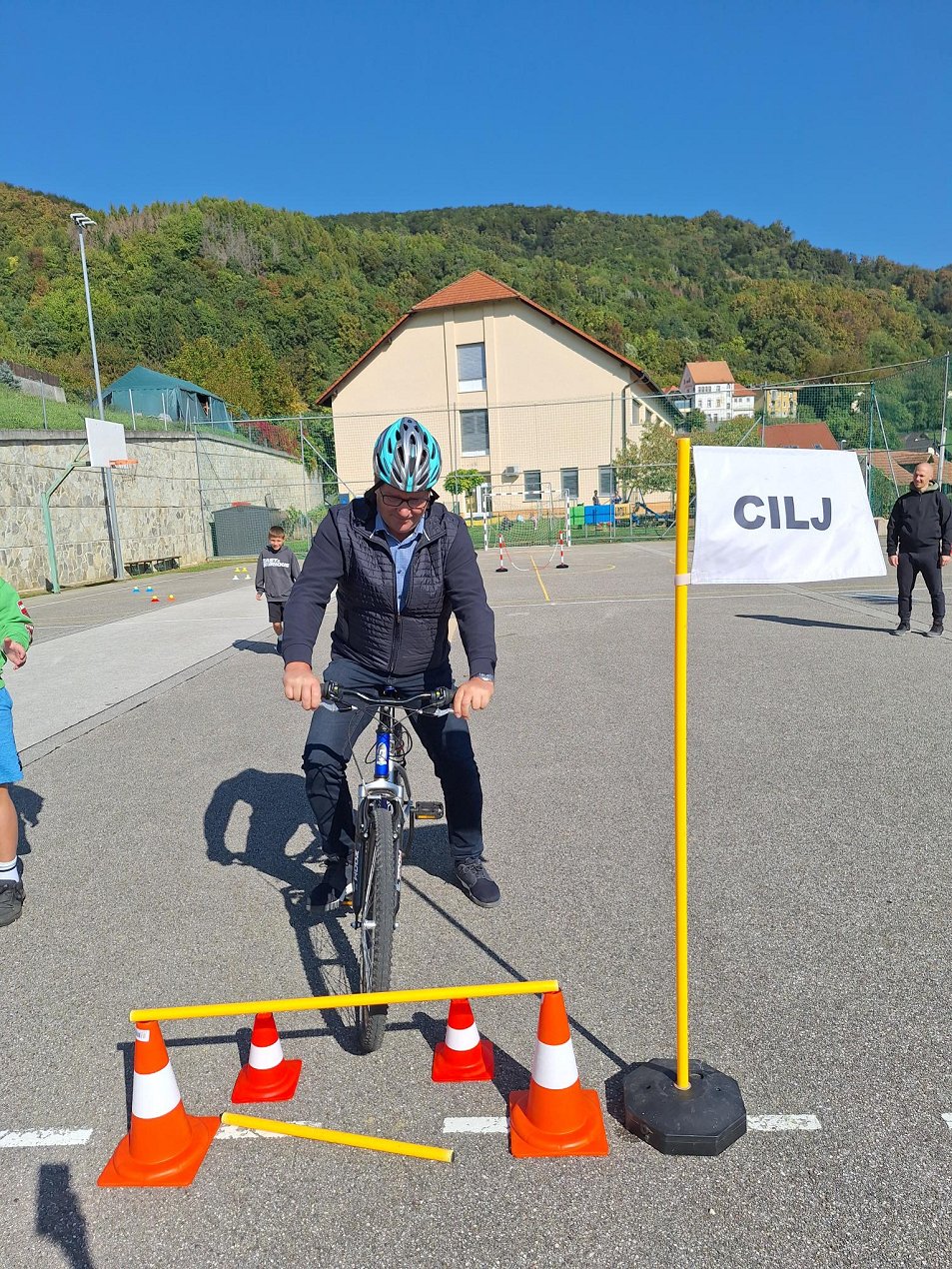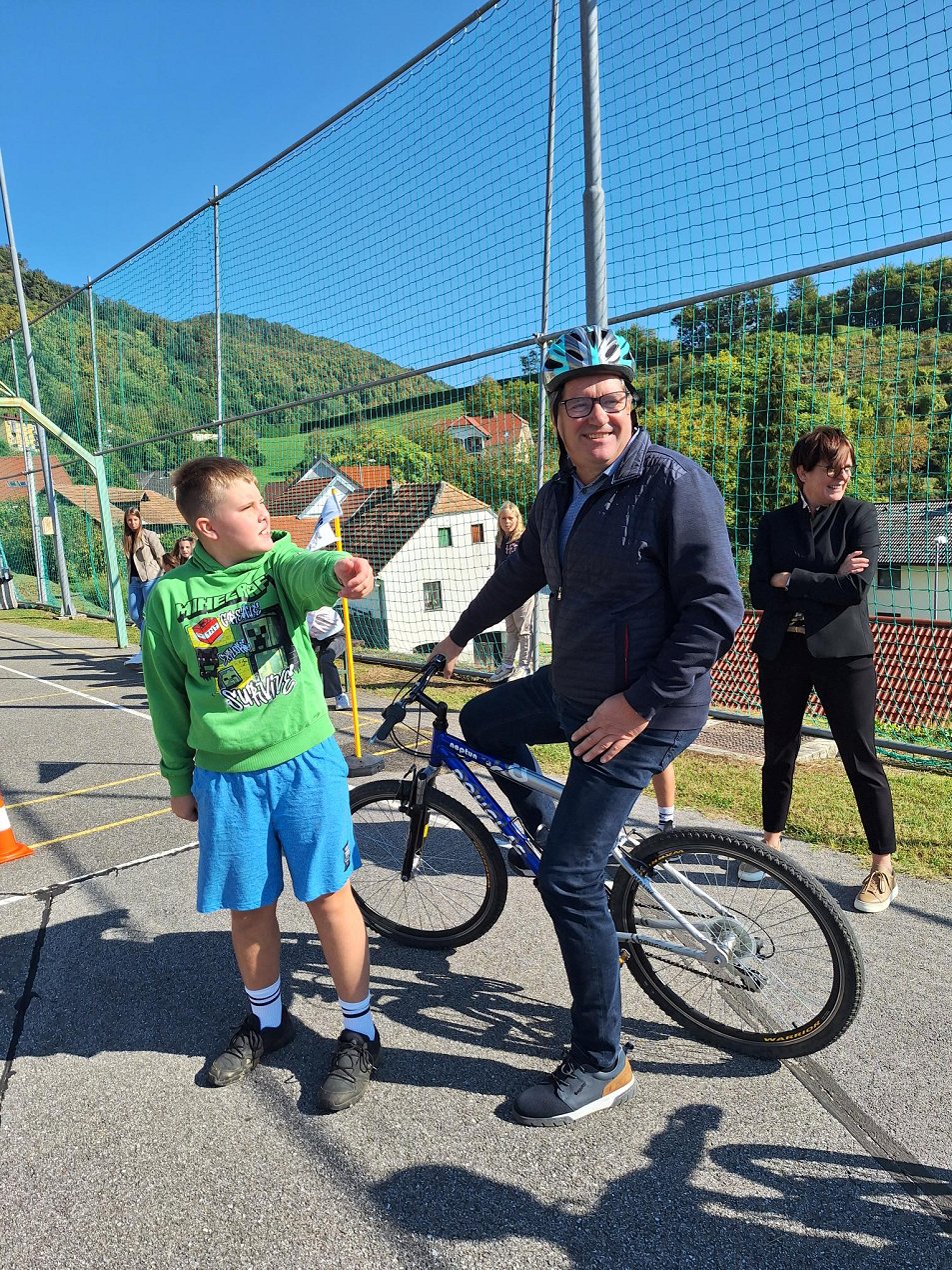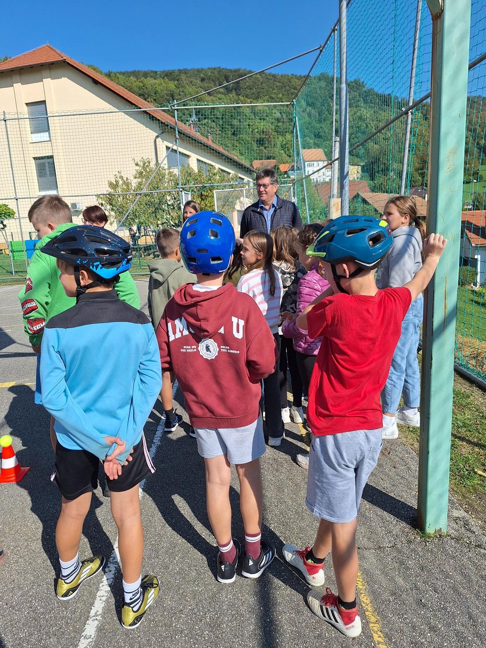 Župan si je najprej ogledal kolesarski poligon na šolskem igrišču, ki je bil letos opremljen z novo opremo, financirano s strani občine. Pri ogledu ga je vodil šestošolec Bojan Pajk Nikolič, župan pa se je tudi sam preizkusil na poligonu in ob tem učence opomnil na pomembnost nošenja čelade ter varne vožnje v prometu.