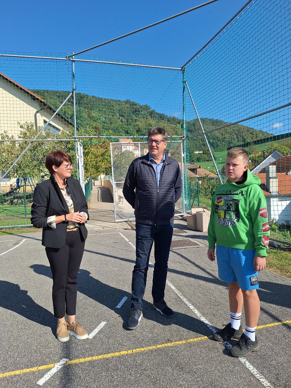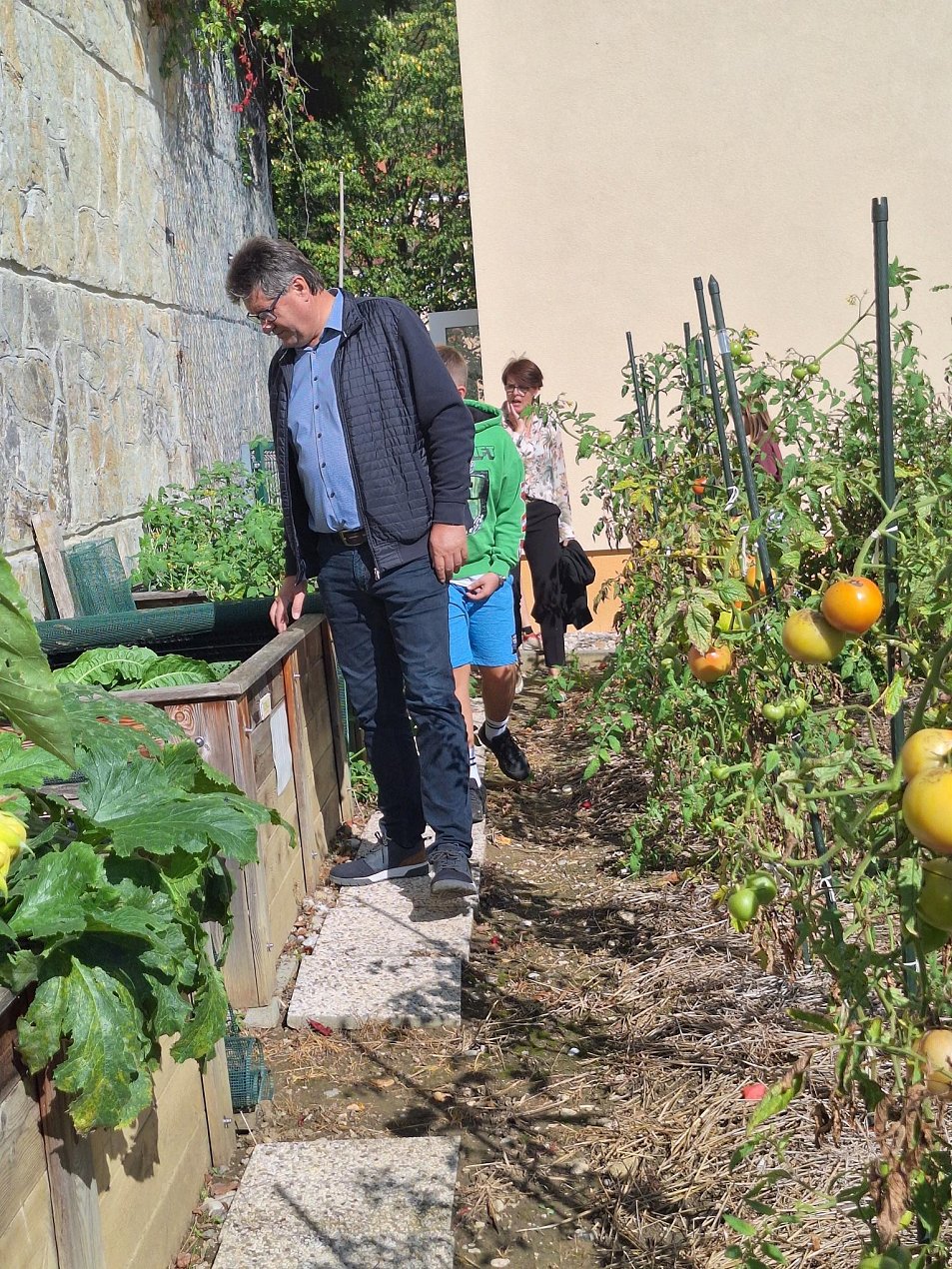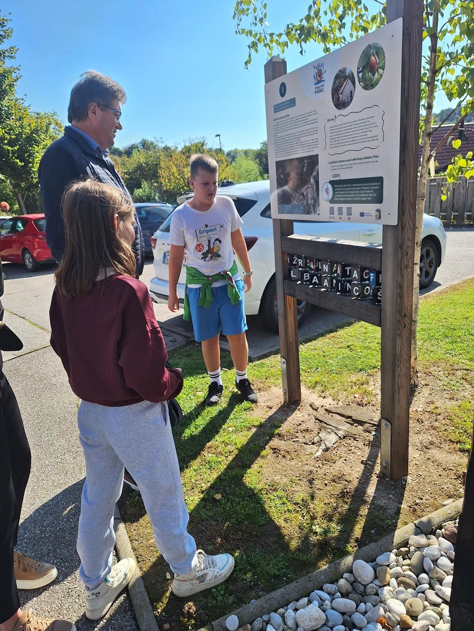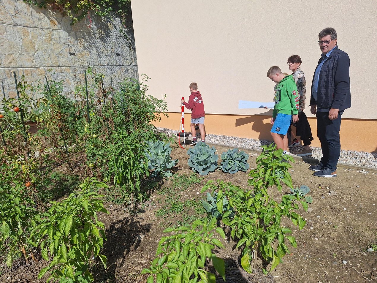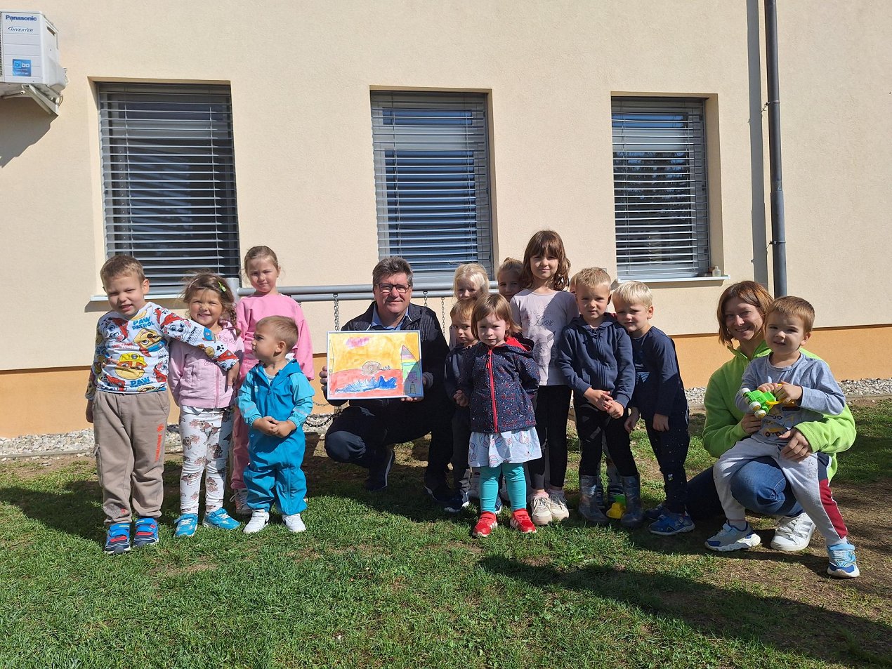 Župan si je ogledal tudi šolski vrt s kompostnikom, kjer učenci skrbijo za rastline in se učijo o trajnostnem načinu življenja. Na igrišču vrtca je pozdravil najmlajše iz skupine Pikice, ki so mu zapeli in podarili sliko za spomin.