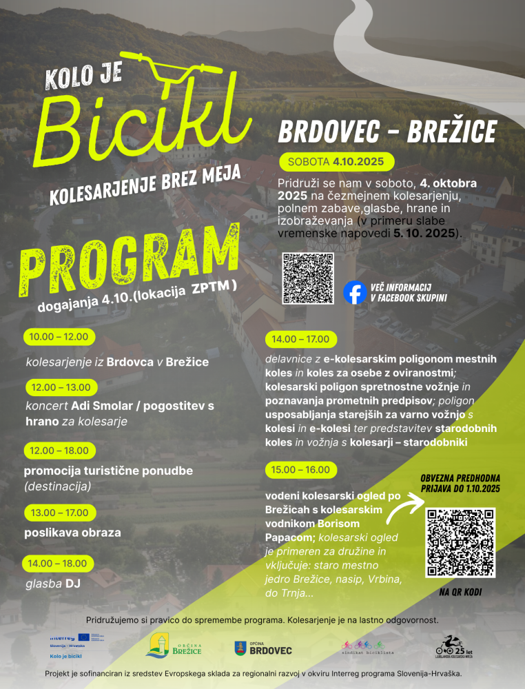 V soboto, 4. oktobra 2025, bo med 10.00 in 12.00 potekal čezmejni kolesarski dogodek KOLESARJENJE BREZ MEJA 2025. Za zagotavljanje varnosti vseh udeležencev v prometu bo kolesarjenje izvedeno z mobilno zaporo.