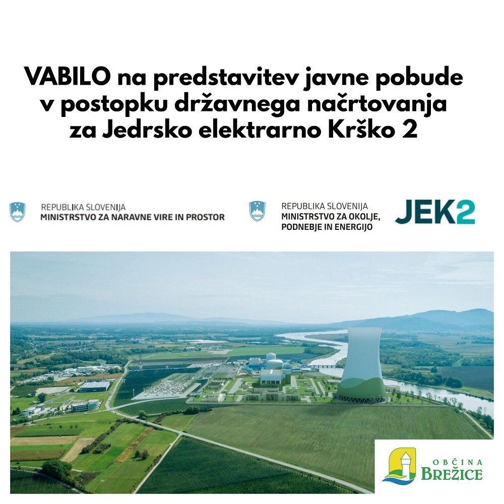 Javna predstavitev pobude v postopku državnega prostorskega načrtovanja za Jedrsko elektrarno Krško 2 (JEK 2) je bila izvedena 2. septembra v Krškem in 17. septembra v Ljubljani, tokrat pa je načrtovana še v Brežicah in sicer 14. oktobra od 15.00 do 18.00 ure v Domu kulture Brežice.