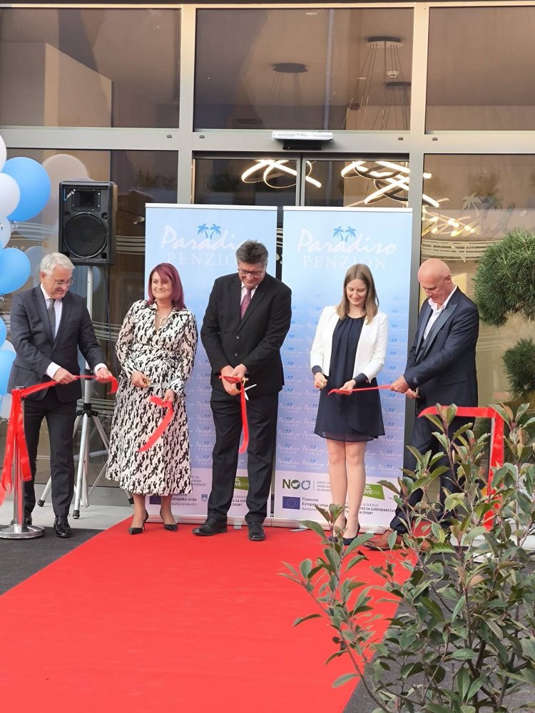 Župan je direktorju podjetja Terme Paradiso Marjanu Cvetkoviču čestital za pomembno pridobitev z željo, da nadaljuje uspešno pot podjetja. Novo pridobitev je blagoslovil brežiški župnik Ivan Šumljak, sledila je simbolična predaja penziona v namen z rezanjem traku.