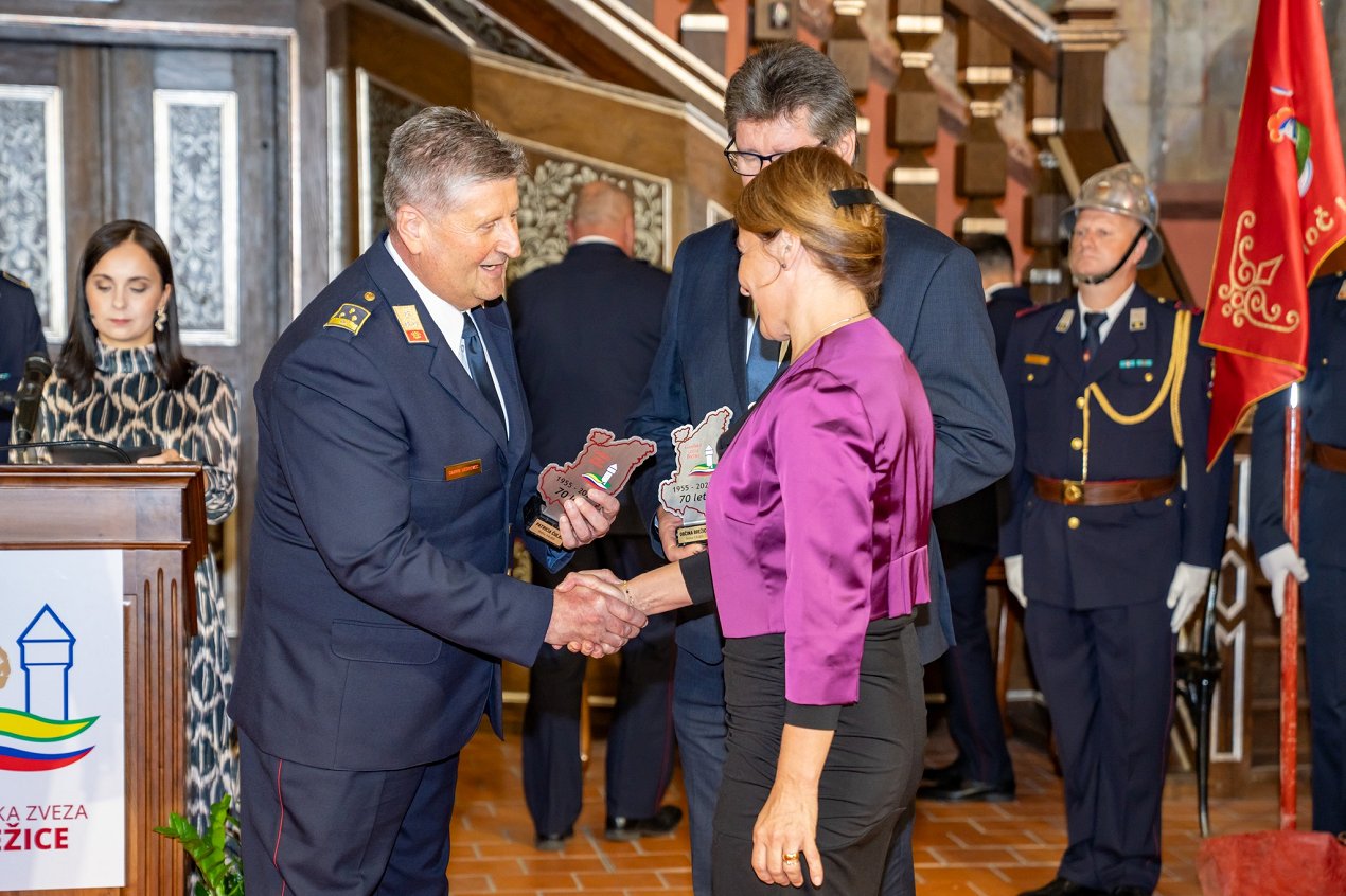 V imenu Gasilske zveze Slovenije je GZ Brežice prejela tudi plaketo ob 70-letnici delovanja, ki jo je podelila dr. Janja Kramer Stajnko, namestnica predsednika GZS.