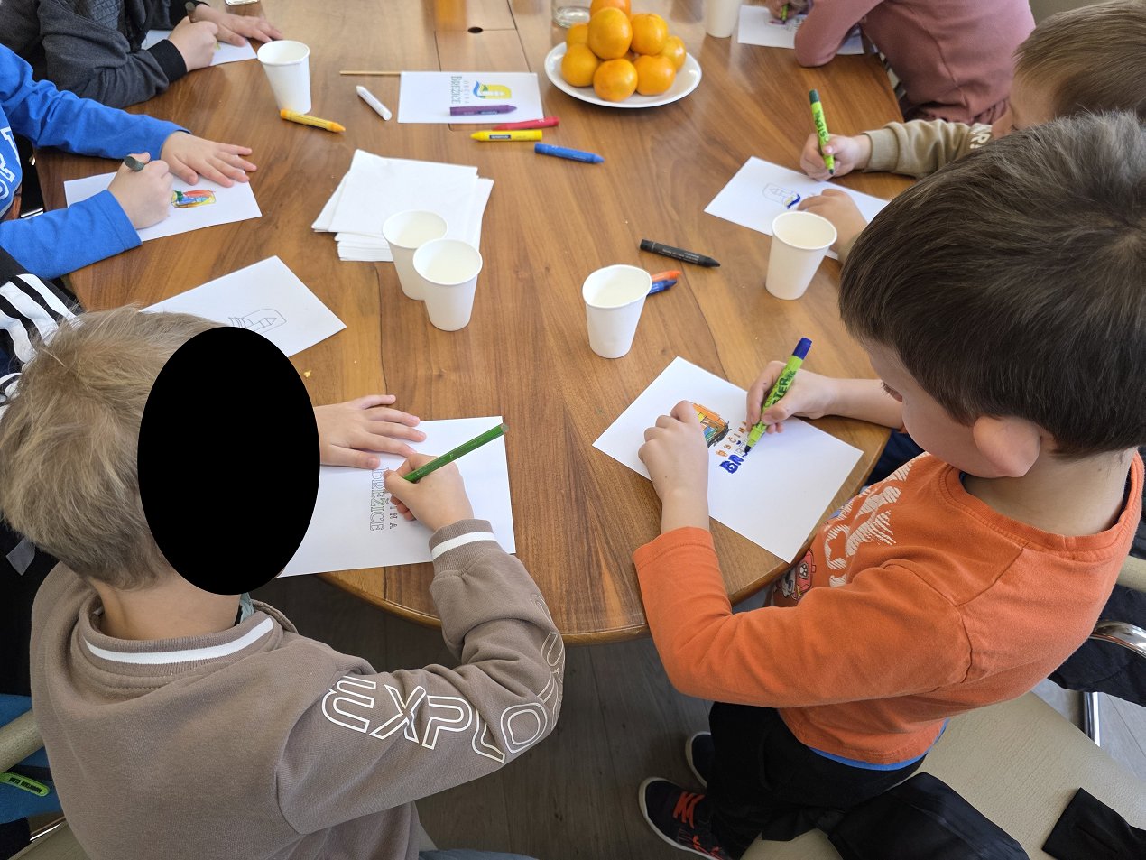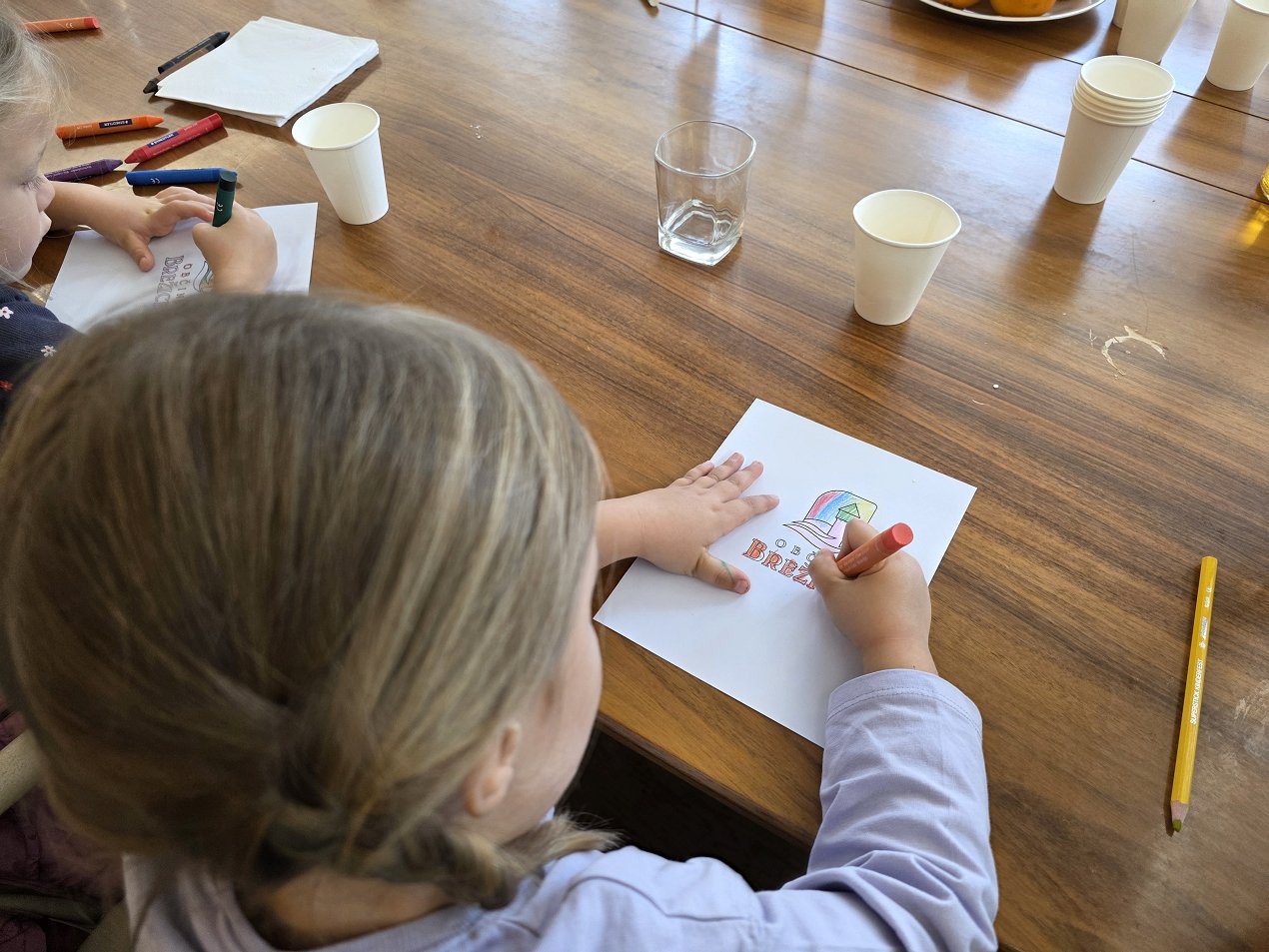 Nato je otroke pričakala sladka malica s krofi in sadjem, dopoldan pa so zaključili z ustvarjalno delavnico, kjer so izdelovali zastavice Občine Brežice in se tako še bolje seznanili z njenimi simboli.