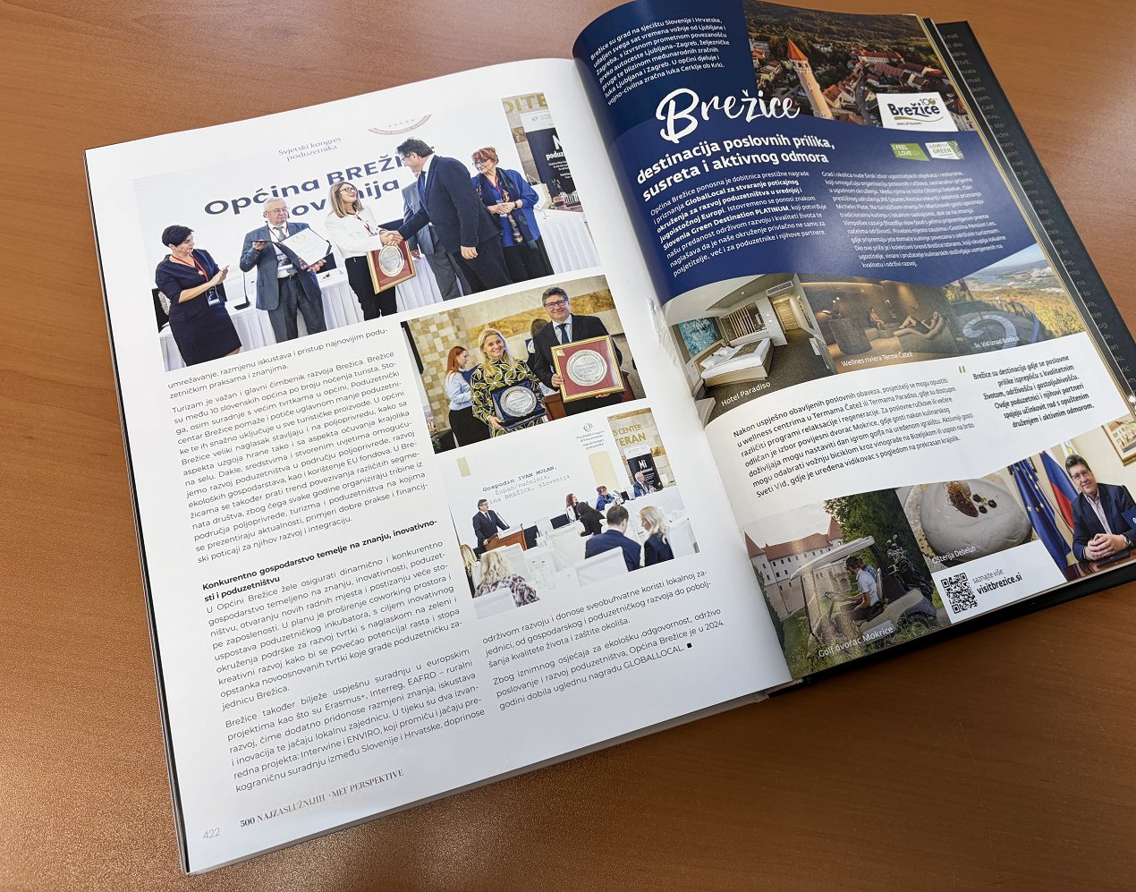 Občina Brežice je po prejemu velike nagrade GlobalLocal 2024 na Svetovnem kongresu podjetnikov vključena tudi v mednarodno monografijo Podjetništvo – 500 najzaslužnejših za razvoj trajnostnega podjetništva in nove ekonomije v srednji in jugovzhodni Evropi 2014-2024, ki je izšla konec leta 2025.