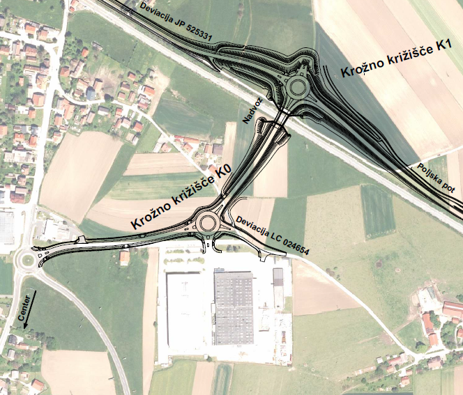 Na obravnavanem odseku je poleg preureditve obstoječih lokalnih cest predvidena tudi novogradnja dela vzhodne obvoznice – odsek pri Intermarketu, ki je bila v prostor umeščena leta 2013 na podlagi državnega prostorskega načrta za HE Mokrice.